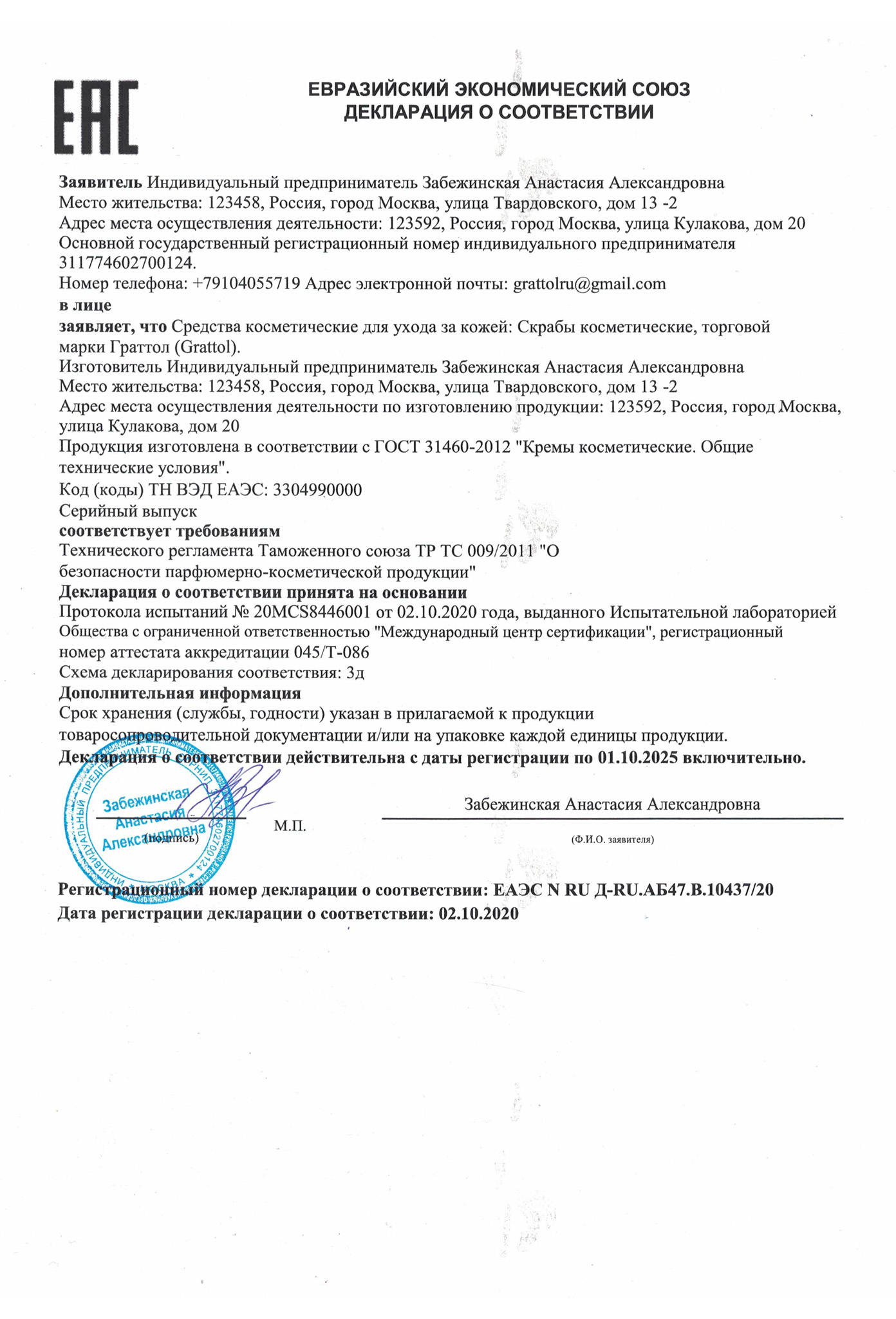 | Скрабы | ЕАЭС N RU Д-RU.АБ47.В.10437/20 | 01.10.2025 |